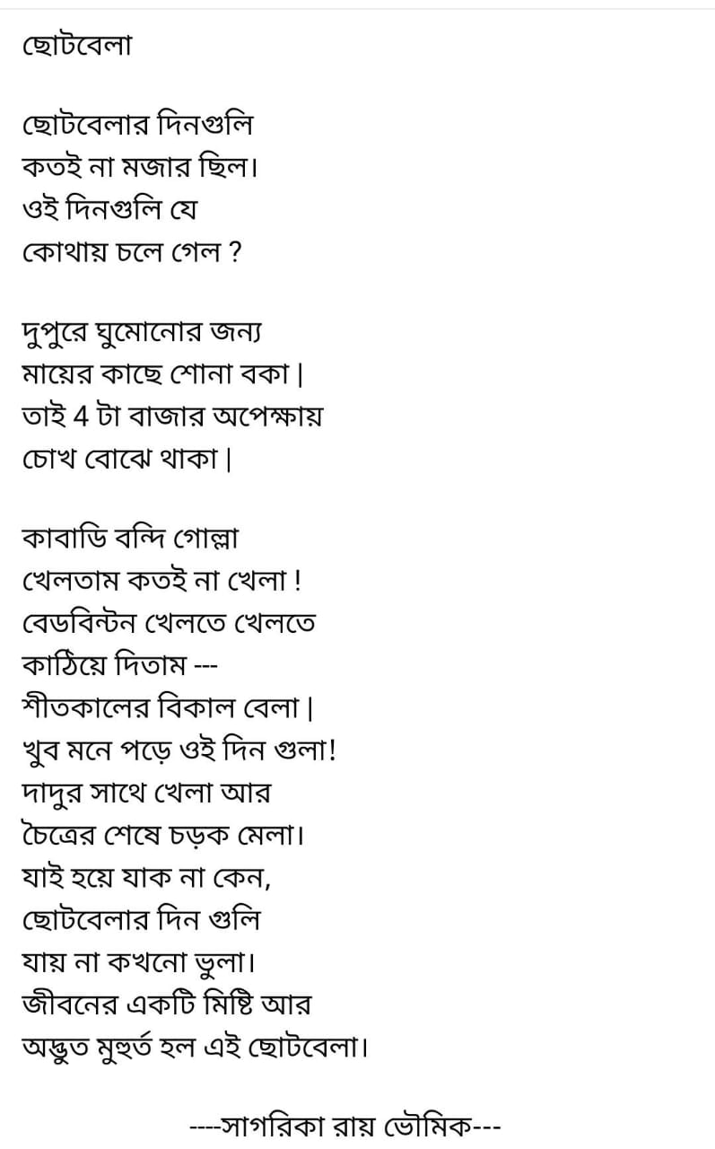 Hello everyone, I am Sagarika Roy Bhowmik, study in class-12. I live at Rajnagar.Welcome to my webside. I am student of Surashi Information Techonology at Fatikroy Unakoti Tripura.Thanks to the tireless work of my computer teacher Mr.Krishanu Pal,sir.I have gained a lot of computer knowlage today.Now I am sharing some of my own experience with you .I am a simple girl. My hobby: drowing, poem writing and handcraft. I love travelling . I Want to fuifill all the dreams of my parents. I belive my parents will be proud of me one day. I working hard to see that day. Finally,thankyou for giving me this valuable time of your.